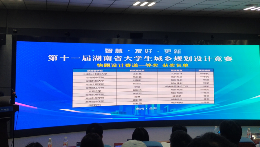 近日,湖南省教育厅正式公布了第十一届湖南省大学生城乡规划设计竞赛结果,我院城乡规划、风景园林本科专业以及风景园林专硕学子凭借展示的专业素养和创新实践能力,荣获一等奖4项,二等奖7项,三等奖7项。其中快题设计赛道一等奖1项、二等奖3项、三等奖4项,设计作品赛道一等奖3项、二等奖4项,三等奖3项。