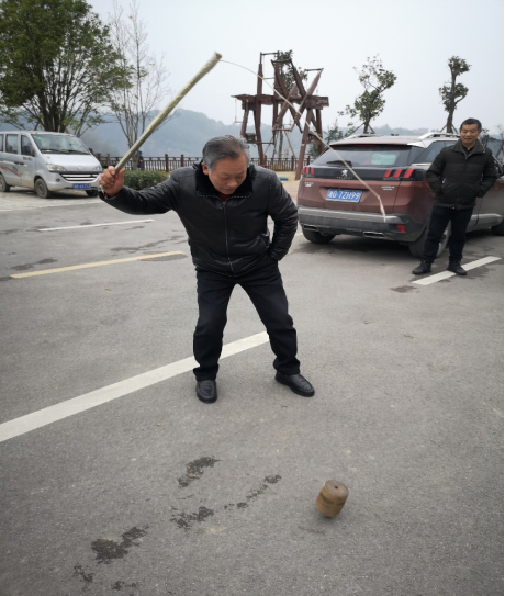 图为特邀嘉宾联系学院的校领导罗金铭副校长在打陀螺