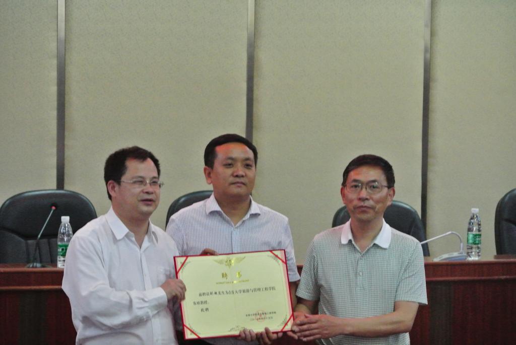 随后,我院院长尹华光诚挚地向刘超校友颁发了“yL23411永利集团旅游与管理工程学院客座教授”聘书,并邀请他为我院题词。