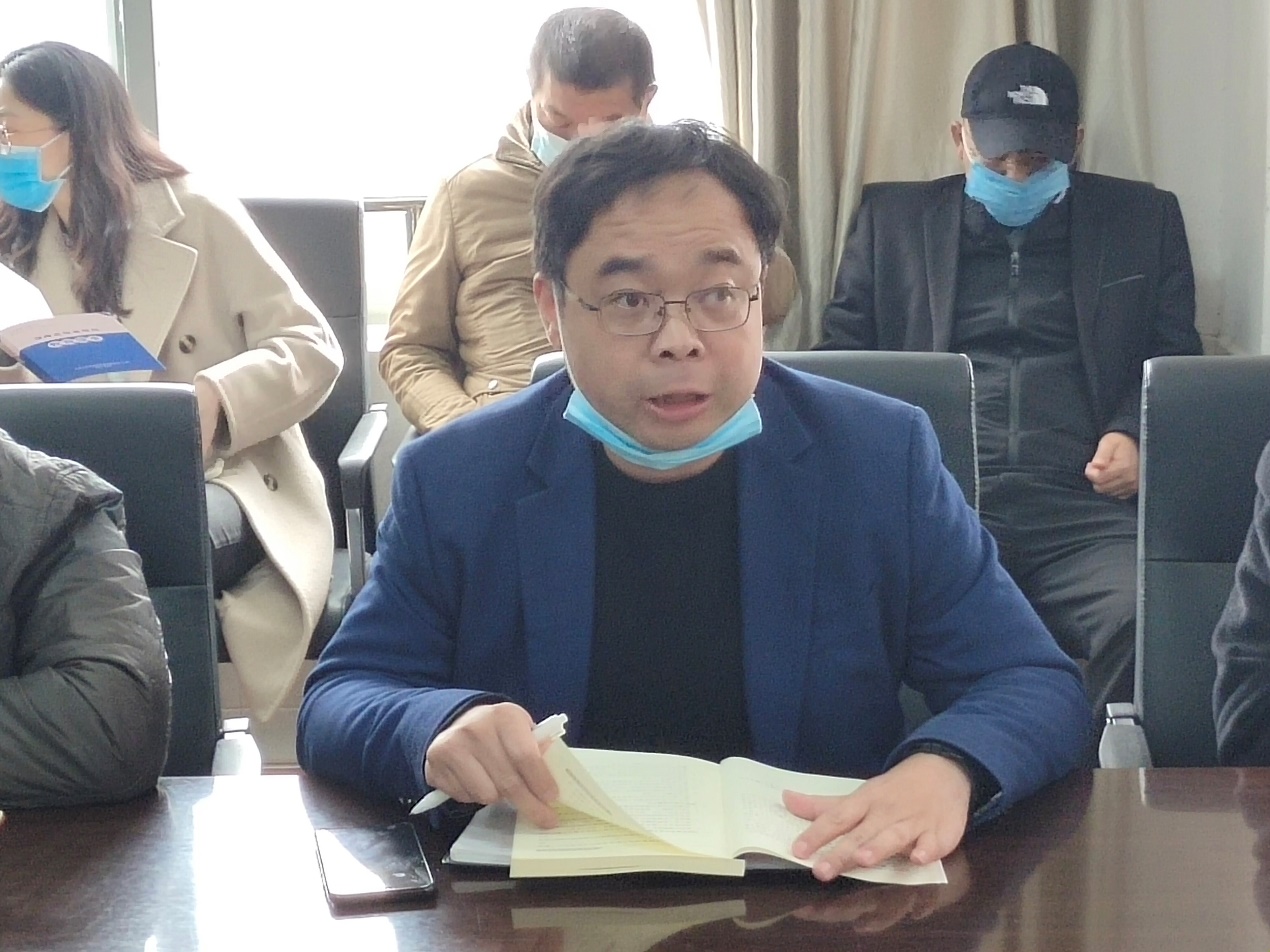 图为董坚峰副院长领学《湖南省师德师风教育读本》内容
