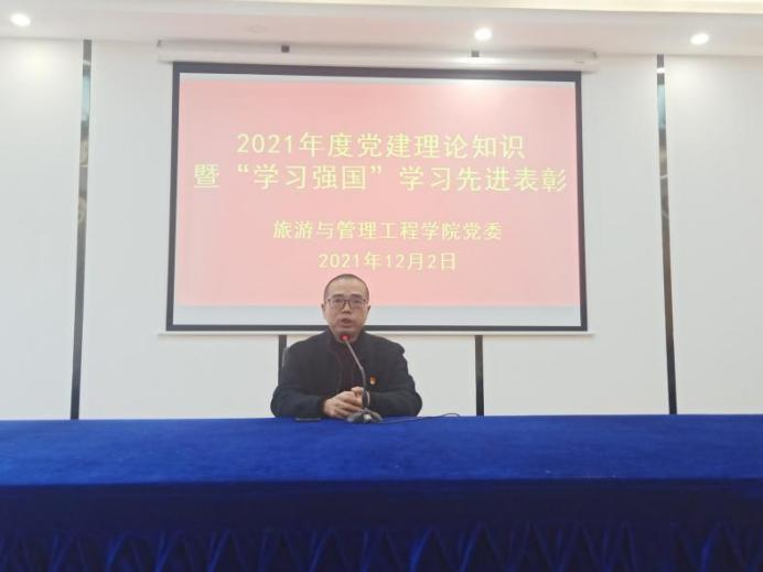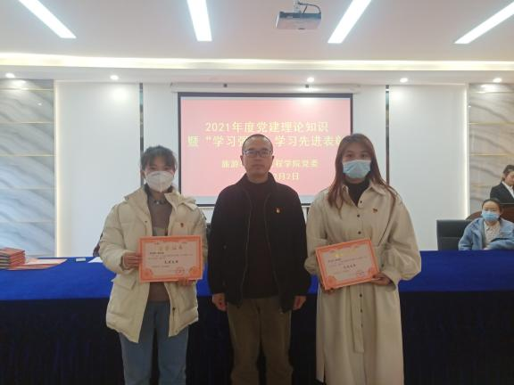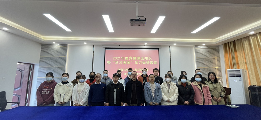 为深入推进党史学习教育,不断提高学习质量和效果,坚定中国特色社会主义理想信念,巩固和扩大“不忘初心、牢记使命”主题教育成果,12月2日下午,我院在2501教室举行了2021年度党建理论知识暨“学习强国”学习先进表彰大会,学院党委副书记李军、学院党委组织委员兼学生第一党支部书记刘世雄、学院党委青年委员兼学生第三党支部书记李大军、教工党支部书记蔡建刚、院团委书记兼学生第二党支部书记赵潞出席本次会议。