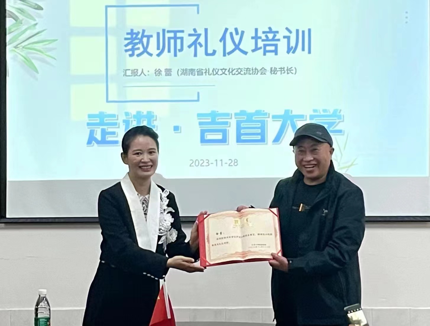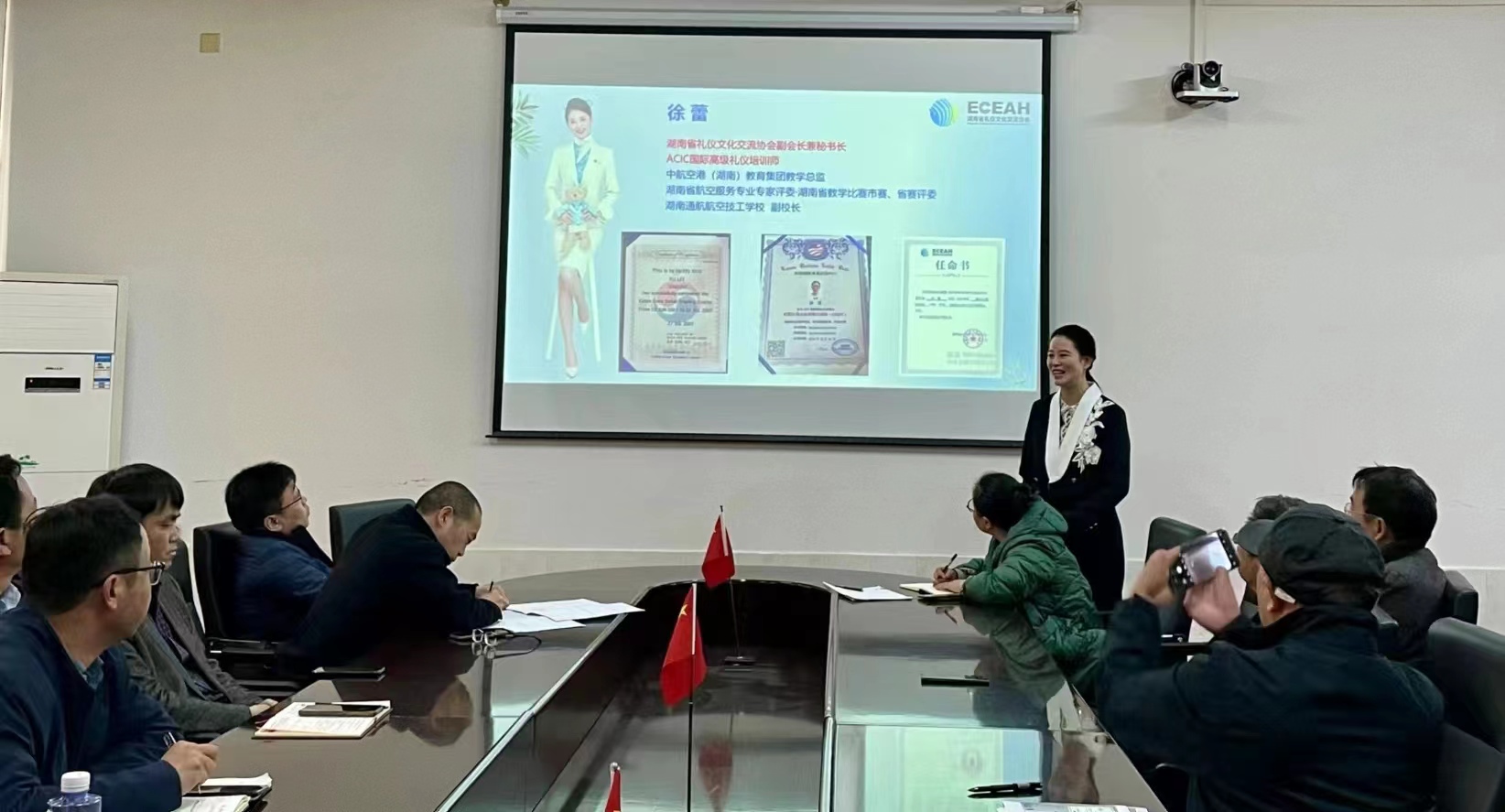 本网讯(徐瑶)11月28日下午,旅游学院教职工第三次政治理论集中学习在学院会议室举行,湖南礼仪文化交流协会副会长、湖南通航航空技工学校副校长徐蕾应邀为老师们讲授《教师礼仪》。徐蕾早年当过国际航班空姐,接受过最严苛最专业的礼仪训练,长期从事礼仪教育研究和培训,获全国全省礼仪教育各种大奖数十项。