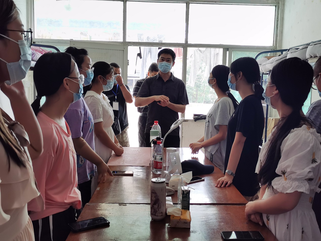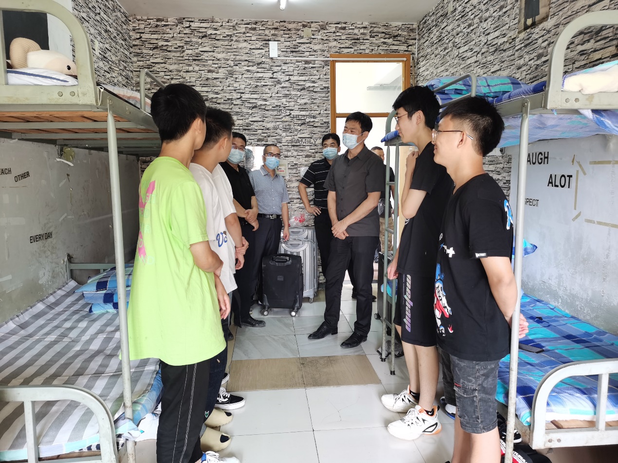 在新生宿舍,王绯副校长代表学校对新生的到来表示了欢迎,他亲切地询问了大家来自哪里,是否习惯新环境,对学校食宿是否适应、满意、有什么建议。他认真察看学生宿舍内电风扇、照明、床位等是否正常使用,叮嘱新生们在日常生活中要团结同学、互帮互助,在疫情防控常态化期间,遵守学校的规章制度,注意个人安全,做好寝室卫生工作,营造好的学习氛围和寝室风貌。王校长鼓励大家尽快适应新环境、新生活,在yL23411永利集团开启人生新征程。