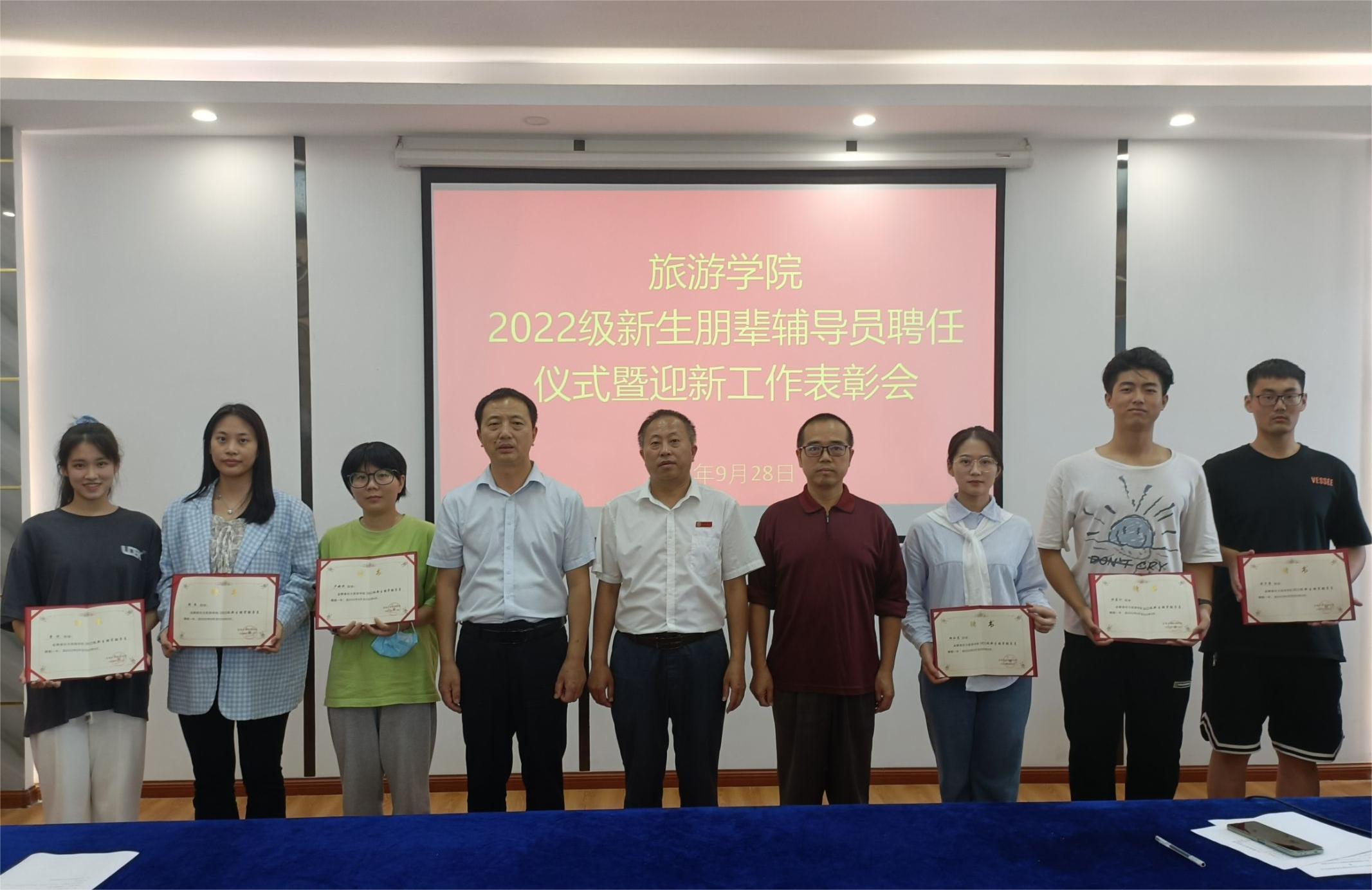 9月28日,旅游学院在院学术报告厅举行2022级新生朋辈辅导员聘任仪式暨迎新工作表彰会,学院院长鲁明勇教授、党委书记尚道文、党委副书记李军出席。