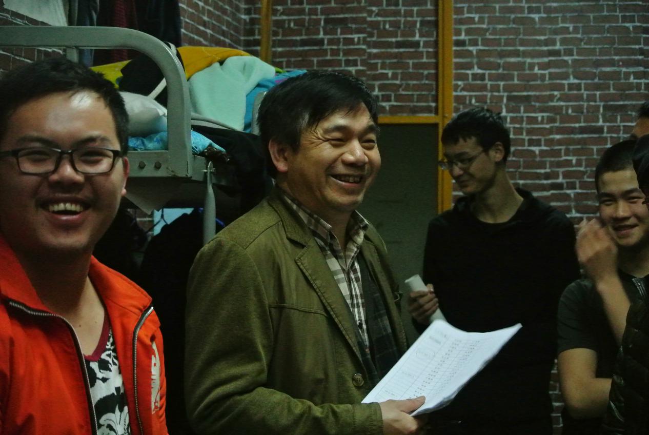 吴永江副书记认真地统计到寝的人数,问清请假学生的原因,嘱咐学生注意水电安全,注意防火防盗。