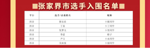 图 1 湖南省直播带货暨短视频大赛张家界市选手入围名单