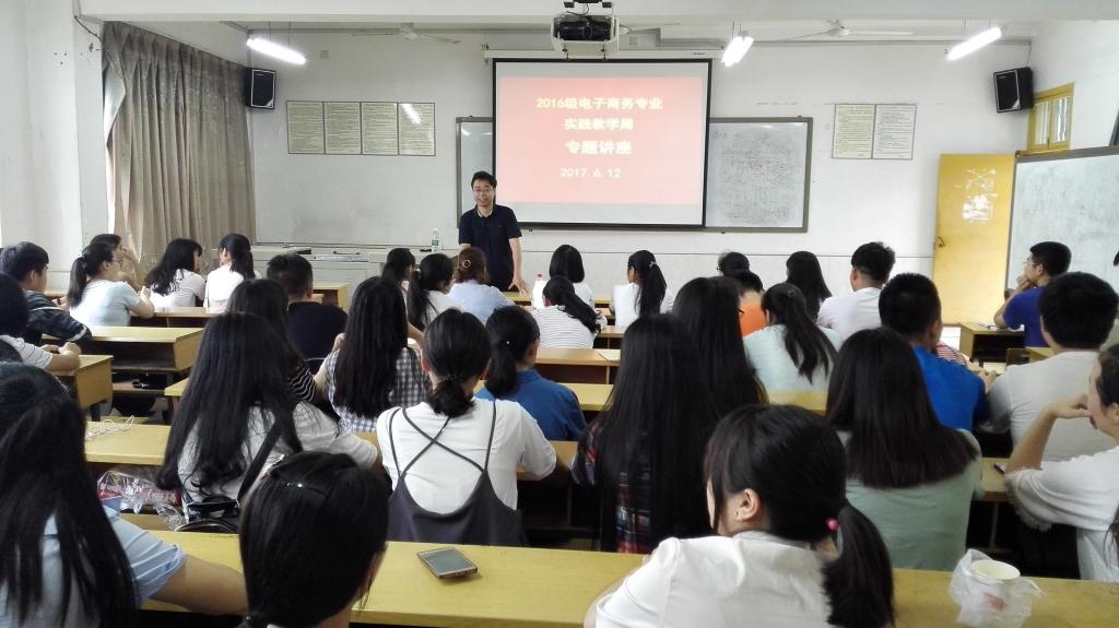 实践教学是本科教学的重要组成部分,是培养学生创新实践能力的必要环节。根据教学计划安排,17-18周系2016级本科各专业实践教学周。为了保证实践教学周活动效果,创新实践教学活动形式,电子商务系策划了“企业专家进课堂,专题讲座促规划”系列实践教学周活动,邀请IT企业及电商公司高级管理人员及运营总监为学生讲授行业发展前景及职业规划,2016级电子商务专业71名本科生及电子商务系部分专业教师参加了讲座活动。