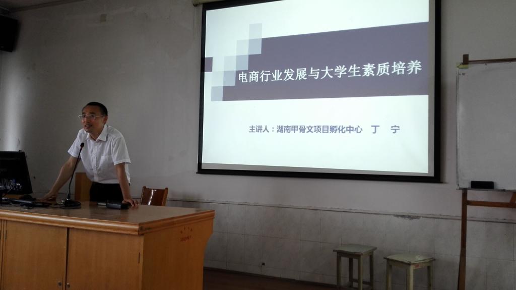 6月12日下午,甲骨文湖南项目孵化中心运营总监、湖南拓福软件科技有限公司副总经理丁宁先生作了《电商行业发展与大学生素质培养》专题讲座,电子商务系主任周波主持。丁宁先生先后在苏州软件园、长沙软件园担任智慧城市建设项目经理、电子商务运营总监等职务,系全球知名数据库厂商甲骨文在湖南的运营总监,近年来关注和扶持大学生创业项目孵化。丁总从互联网思维塑造、电商模式变革、电商服务业兴起和发展、微商与微运营等方面讲授了电子商务行业发展现状,并以自己指导和运营项目孵化中心的大学生案例讲授了大学生素养的构成和培育途径,勉励在座大学生认真学习专业知识和技能、努力提升综合素养、积极投入创新创业实践。两位老总的讲座信息量大,言辞幽默风趣,案例多样,引起了在座师生的阵阵掌声。