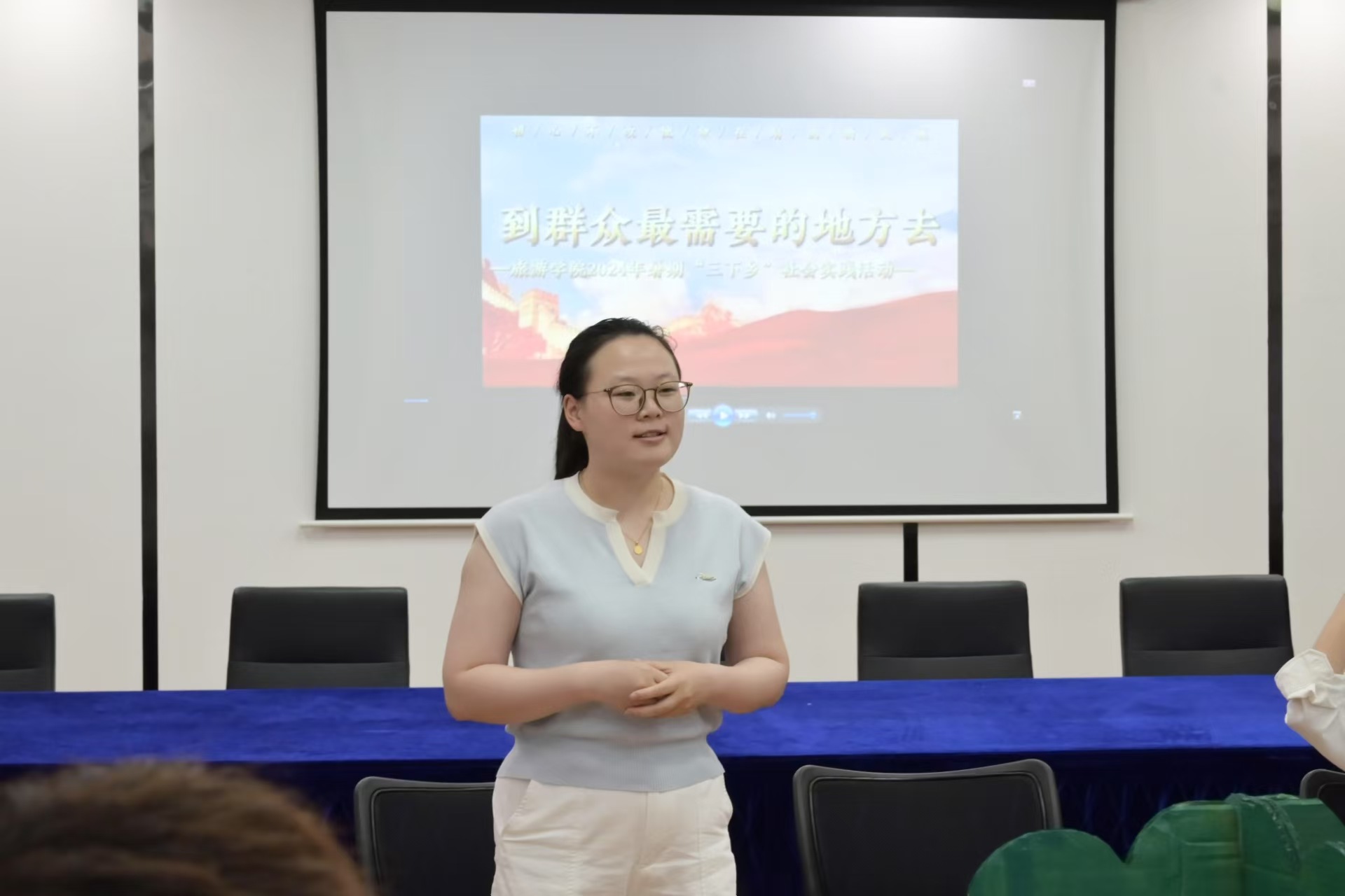 活动伊始,一段精彩的往期“三下乡”实践纪实视频瞬间点燃了现场气氛。视频生动记录了团队成员深入乡村、团结协作的实践场景,展现了青春力量在乡土间的蓬勃活力,为新成员们提供了直观鲜活的实践教材,有效激发了其投身乡村振兴的内在热情。