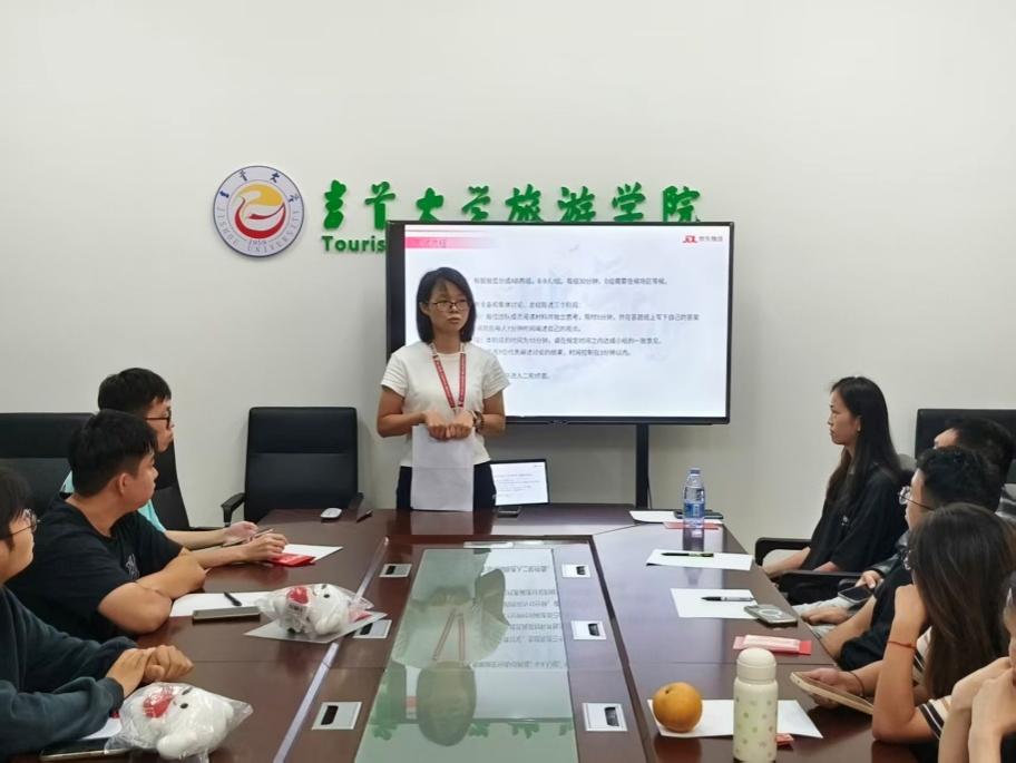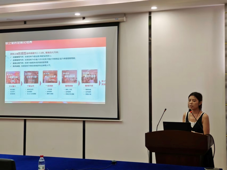 京东物流湖南分公司HRBP刘佳莉首先进行了宣讲,她通过详实的数据和生动的案例,介绍了京东近年来的发展历程和卓越成就,着重介绍了“新锐之星”的培养目标、培养计划及福利待遇等方面的内容,并就同学们提出的问题进行了解答。