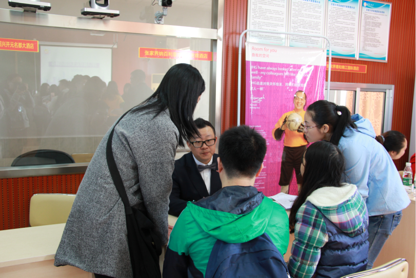 接着开始了毕业生面试,毕业生找到自己心仪的公司,递上自己的简历,描述自己的意向,通过对自己大学经历的简述,大方的展现自己的优秀,吸引企业来录用自己。看着一群群毕业生围着35个公司的负责人,焦急又充满自信的样子,那个样子大概是我见过最美的样子了,在这次的招聘会上有40人左右签订了意向性就业协议 。