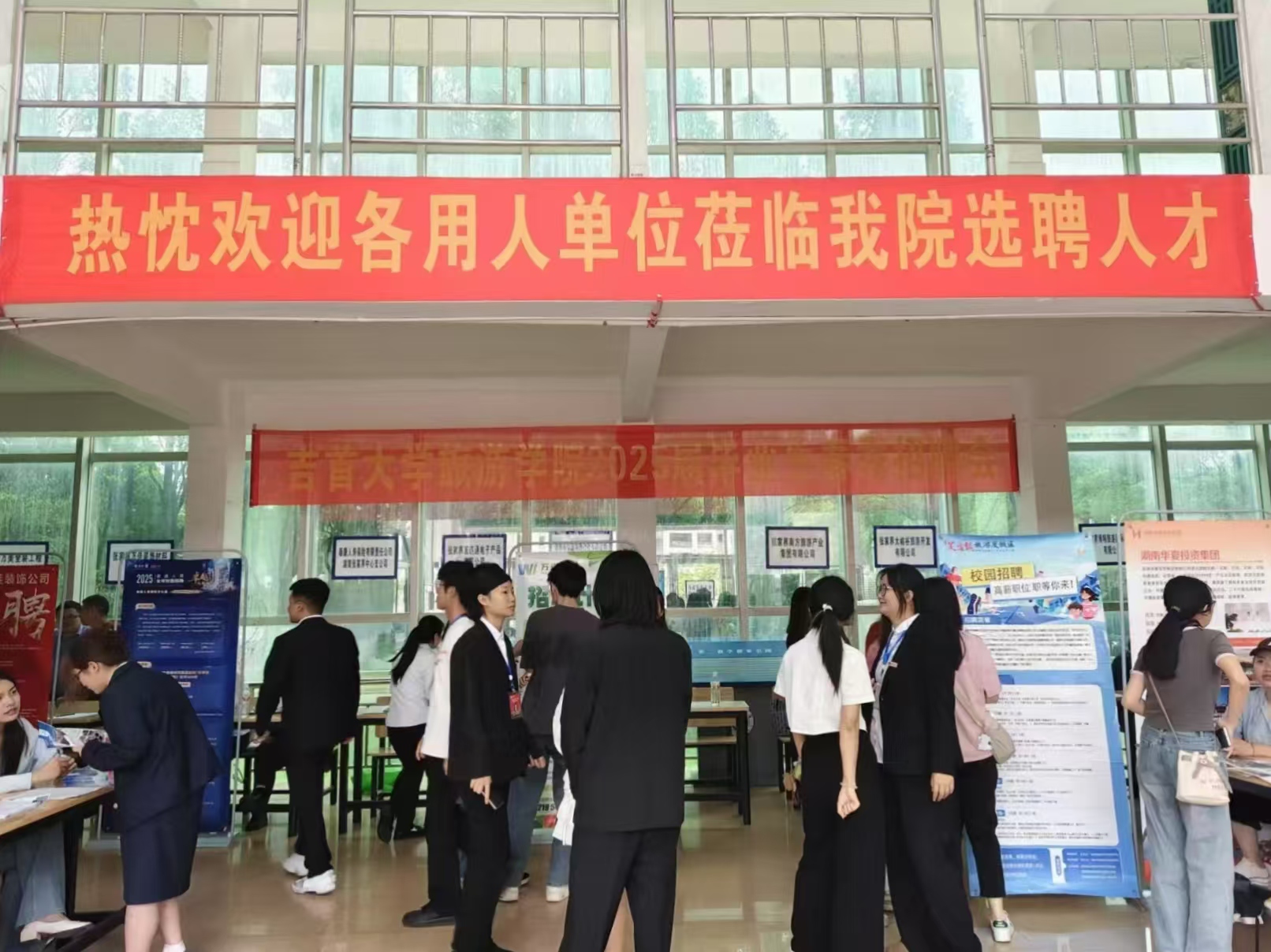 本网讯(伍鑫)5月7日,旅游学院在张家界校区举办春季专场招聘会。本次招聘会以“深化产教融合,赋能职业发展”为主题,吸引了来自长沙、张家界等地区文旅产业集群的39家优质企业参与,累计提供涵盖酒店管理、会计、人事专干等核心领域的就业岗位600余个。