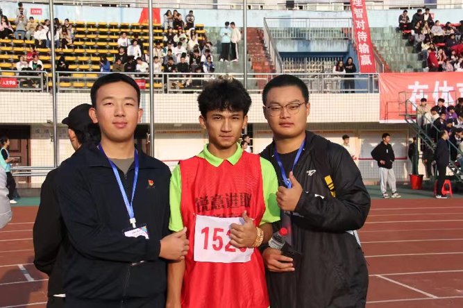 凯合日曼·开山尔江敢于拼搏,挑战自我,在赛场上不断奔跑,挥洒汗水,昂扬的迈出每一个脚步,展现青春的脚步,青春的速度,青春的活力,青春的姿态。恭喜凯合日曼·开山尔江荣获男子100米比赛第三名。