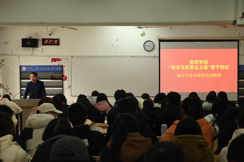 本网讯(邹依轩)为提升青年学生干部、学生的思想政治素养,培养出一批爱党爱国的新时代马克思主义者。旅游学院于2023年12月14日在二教2313教室举办第五期“青年马克思主义者”骨干培训,本次培训的主讲嘉宾是yL23411永利集团旅游学院副院长董坚峰,各班优秀学生以及全体学生干部和融媒体成员参加了此次培训。
