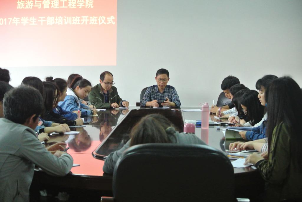 (本报讯:李惠 照片提供:翁梦静)为增强学生干部的全局意识、服务意识、责任意识,加强学生干部的凝聚力,培养出一批综合素质高、管理能力优、创新精神丰、责任意识强的学生干部,我院于2017年5月3日中午在二教会议室举办了2017年学生干部培训班开班仪式。本次大会由符铁军书记担任主讲人,刘世雄老师以及第六届团总支学生会全体成员参与了本次大会。