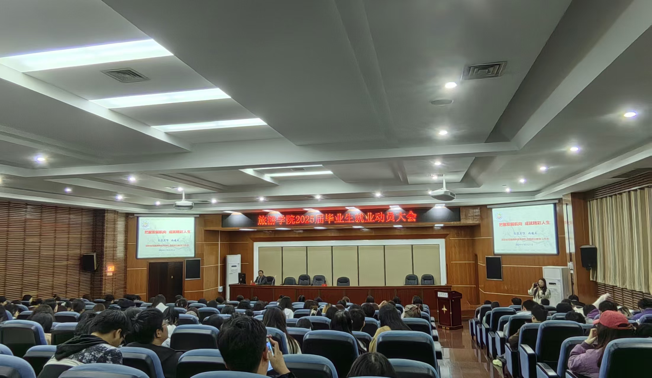 本网讯(伍鑫 张吉阳 朱思琪)为帮助毕业生提高就业能力,助力毕业生成长成才,分类精准引导毕业生高质量充分就业,10月21日,旅游学院在张家界校区逸夫楼学术报告厅召开2025届毕业生就业动员大会。旅游学院党委书记尚道文、党委副书记华骏出席动员会。