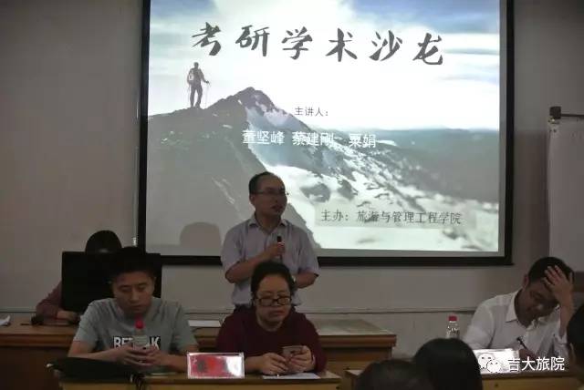 2017年5月25日,由旅游与管理工程学院主办的“考研学术沙龙”主题讲座,在张家界校区二教508多功能教室举行。本次讲座由蔡建刚、董坚峰、粟娟老师以及考研成功的高峰学长为我们讲解。