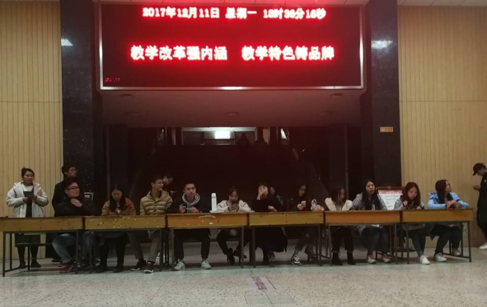 本次海选于2017年12月11日晚6点30分在一教大厅举行。担任海选的评委分别是:旅游与管理工程学院团总支学生会主席团,及各部门部长。由文艺部赵萍萍担任此次主持。