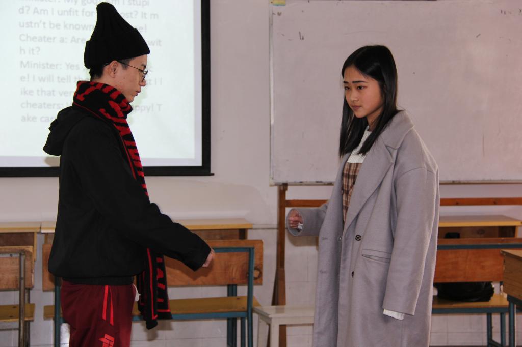 同学们悉心准备的表演道具也为表演增添一份色彩,而表演者对细节的重视,更是让评委和观众在优美的背景乐中,忍不住沉醉其中。参与评选的每个剧本都是不断推敲修改,每个表演动作都是不断重复练习,甚至每个站位,每个眼神,都经过仔细琢磨,不敢半点马虎,为了更好的表演剧目,日日夜夜的背诵台词,同学们为此付出了很多,值得获得所有人的掌声!