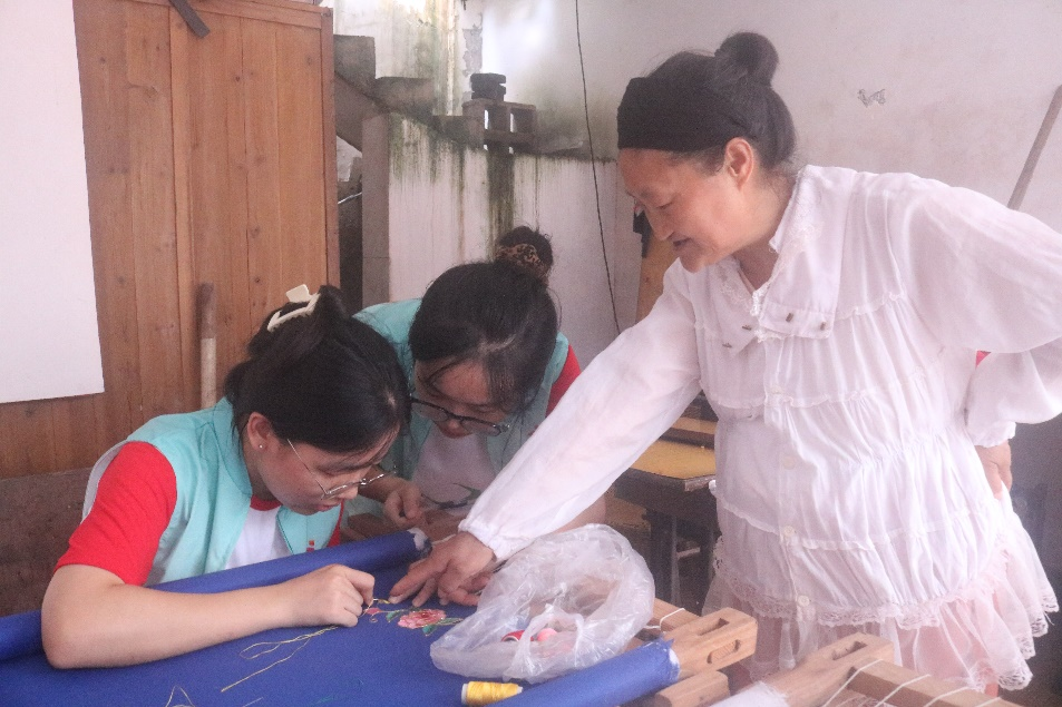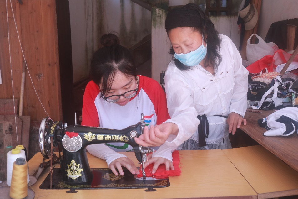 一针一线,织就千年时光之锦;一丝一缕,牵动古今传承之脉。甄师傅耐心向志愿者教授缝纫机的使用,解读缝纫技巧,介绍白族刺绣繁复而细腻的绣花工艺流程,在一步步的指导下,志愿者们从针脚的不均匀、线条的生硬到渐入佳境,亲身体验了机器缝纫的精密与白族手工刺绣的温婉之美。这份古老的艺术遗产穿越时光的长河,以针为笔,以线为墨,重新书写在当代人的心田。