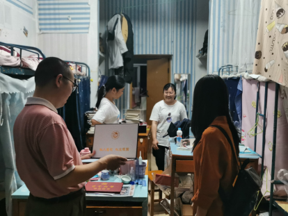 为表达对毕业生的慰问,了解毕业生思想动态,6月9日晚7:30,我院副院长鲁明勇(主持工作)、党委副书记李军、辅导员刘世雄、赵潞、帕克以及邝淑芳走访了毕业生寝室,看望慰问即将离校的2021届毕业生。