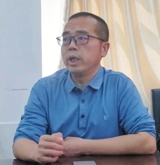 (图为院长助理蔡建刚介绍挑战杯比赛)
