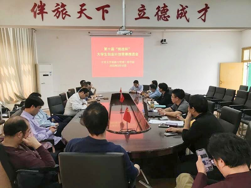 3月15日下午2点30分,我院于2402教室召开第十届“挑战杯大学生创业计划竞赛推进会”。副书记李军、副院长董坚峰、副院长粟娟、院长助理蔡建刚以及各位指导老师参加会议,会议由院长助理蔡建刚主持。