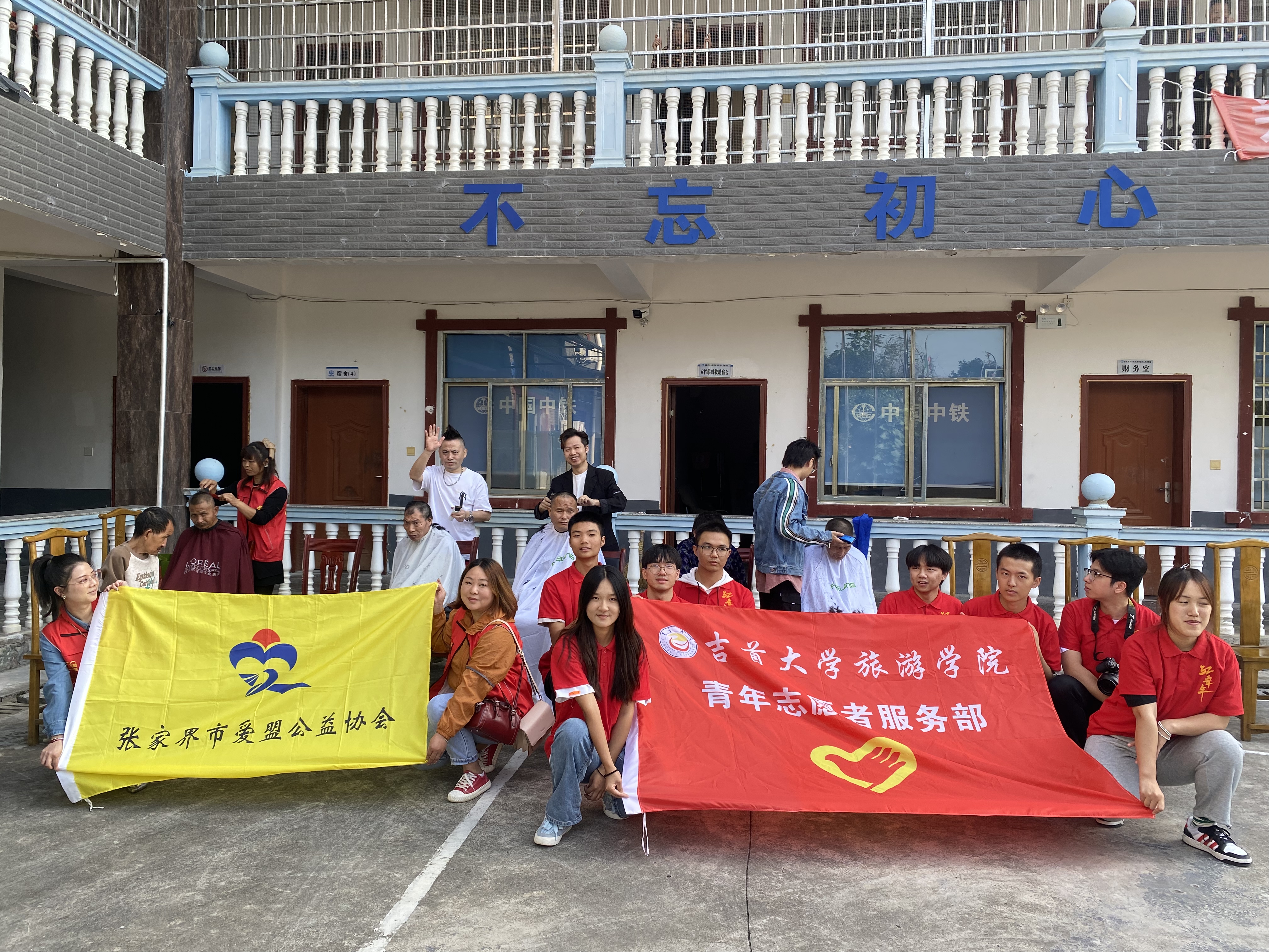 本网讯(卢泓伊 邓景文)为了传递社会正能量,关注并帮助社会弱势群体,2023年10月18日yL23411永利集团旅游学院的八位大学生志愿者与张家界市爱盟公益协会一同前往张家界市永定区救助站开展了义剪志愿服务活动。