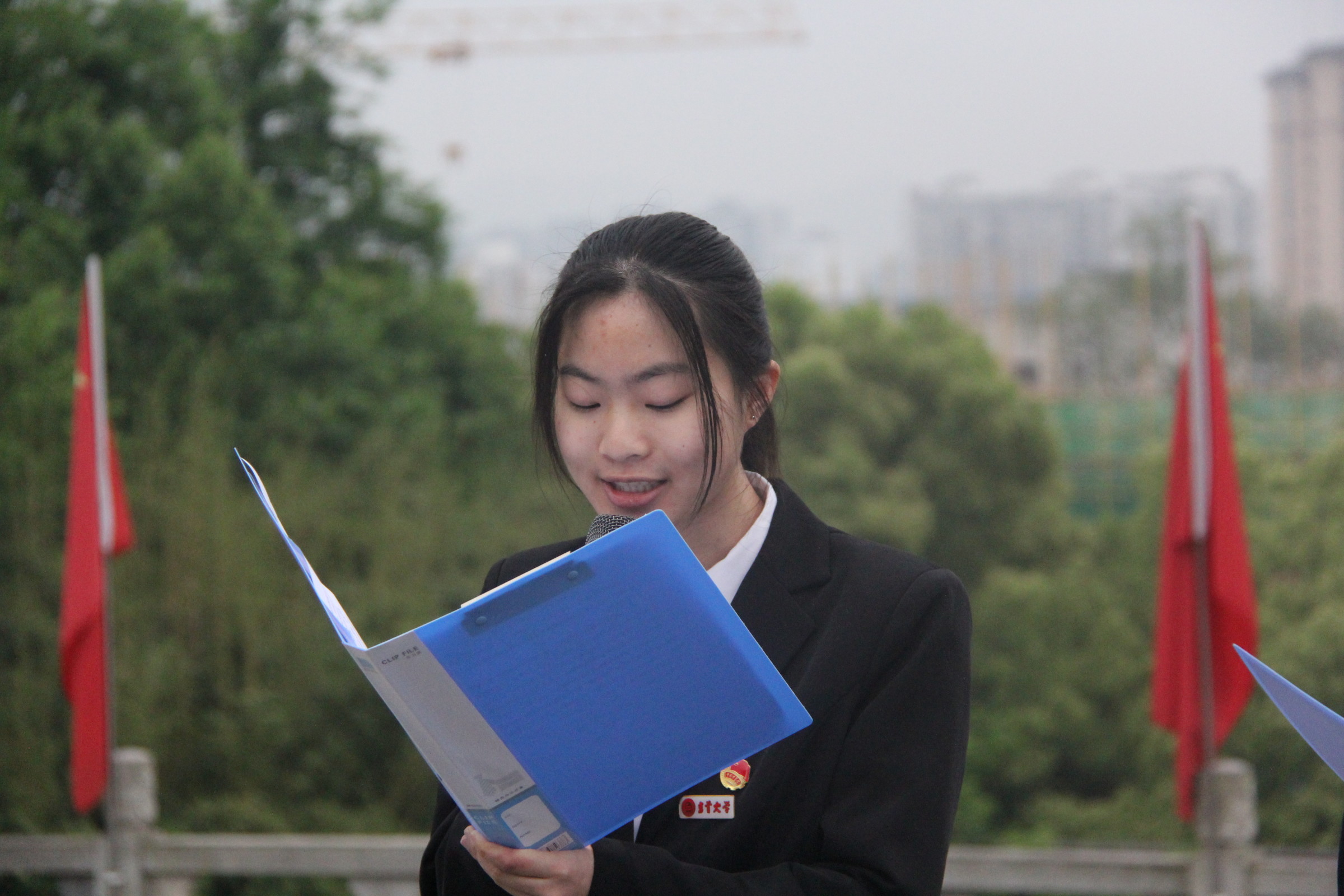 接着,由2020级旅游管理二班的王萱同学在国旗下进行讲话。她说道,今天,大学青年们走在新世纪的路上,感受着阳光的温暖,朝气蓬勃的向前走,征途是星辰大海!今天,我院19级和20级学生站在国旗下回顾历史,重温峥嵘岁月,缅怀党的历史功绩。讲话最后,她提出,在华夏大地的热土上,需要一群有理想、有担当的青年不断探索,砥砺前行。
