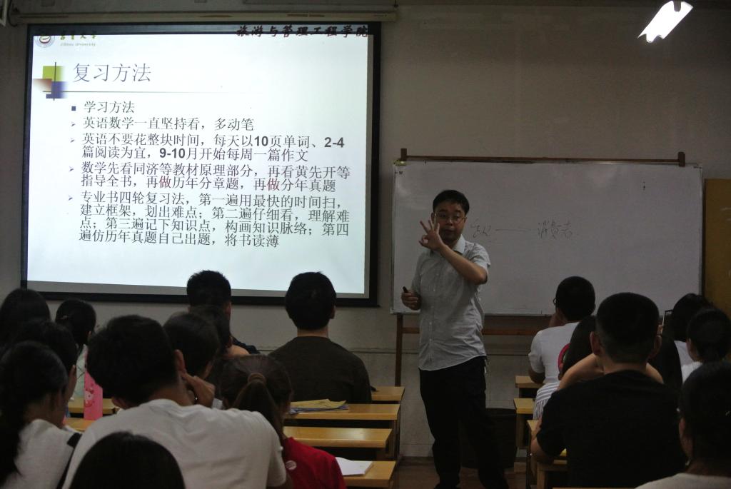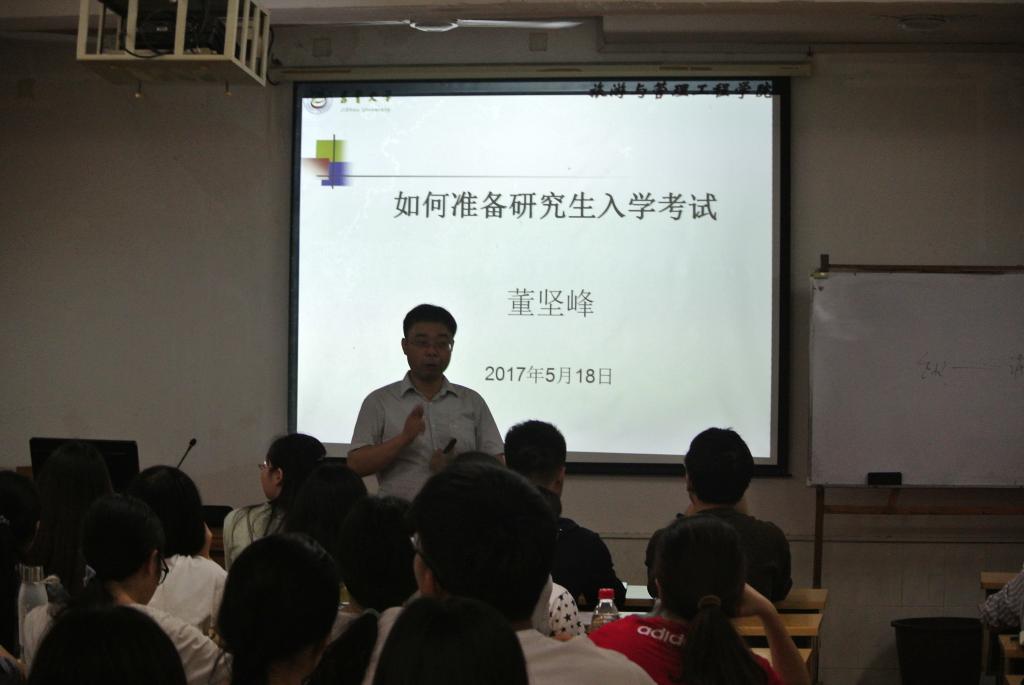 (本报讯:王静)2017年5月18日,由旅游与管理工程学院副院长董坚峰博士主讲的“如何准备研究生考试”主题讲座,在张家界校区二教508多功能教室正式拉开了帷幕。