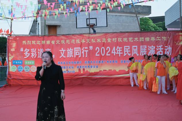 下午四点半,活动正式开始。涟源市文旅局谭迎春局长,三一基金会代表朱理先生与道童村梁少洪支书等领导嘉宾纷纷致辞。他们对道童村的发展寄予厚望,鼓励村民积极参与文化活动,共同打造文旅融合发展的示范村,为道童村的文化事业增光添彩,并预祝本次展演活动取得圆满成功!