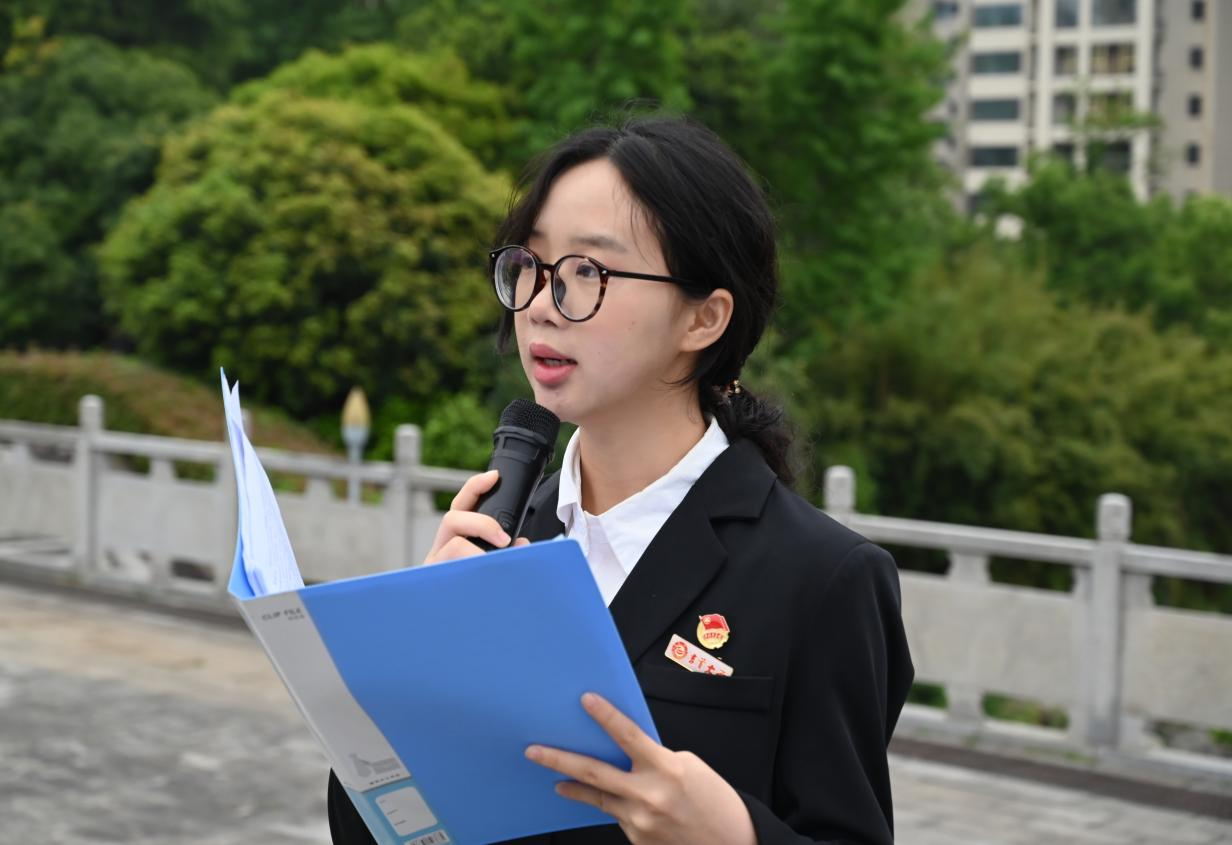 仪式第二项,2022级人力资源管理专业学生李绮发表讲话,临近世界读书日,她呼吁同学们养成良好的阅读习惯,让阅读成为生活的一部分,在知识的海洋中遨游,在阅读的道路上不断前行,“读一流的书,做一流的人;建优良的学风,创一流的学府。”