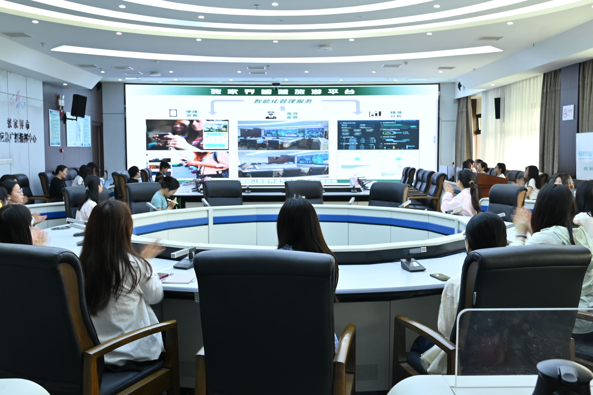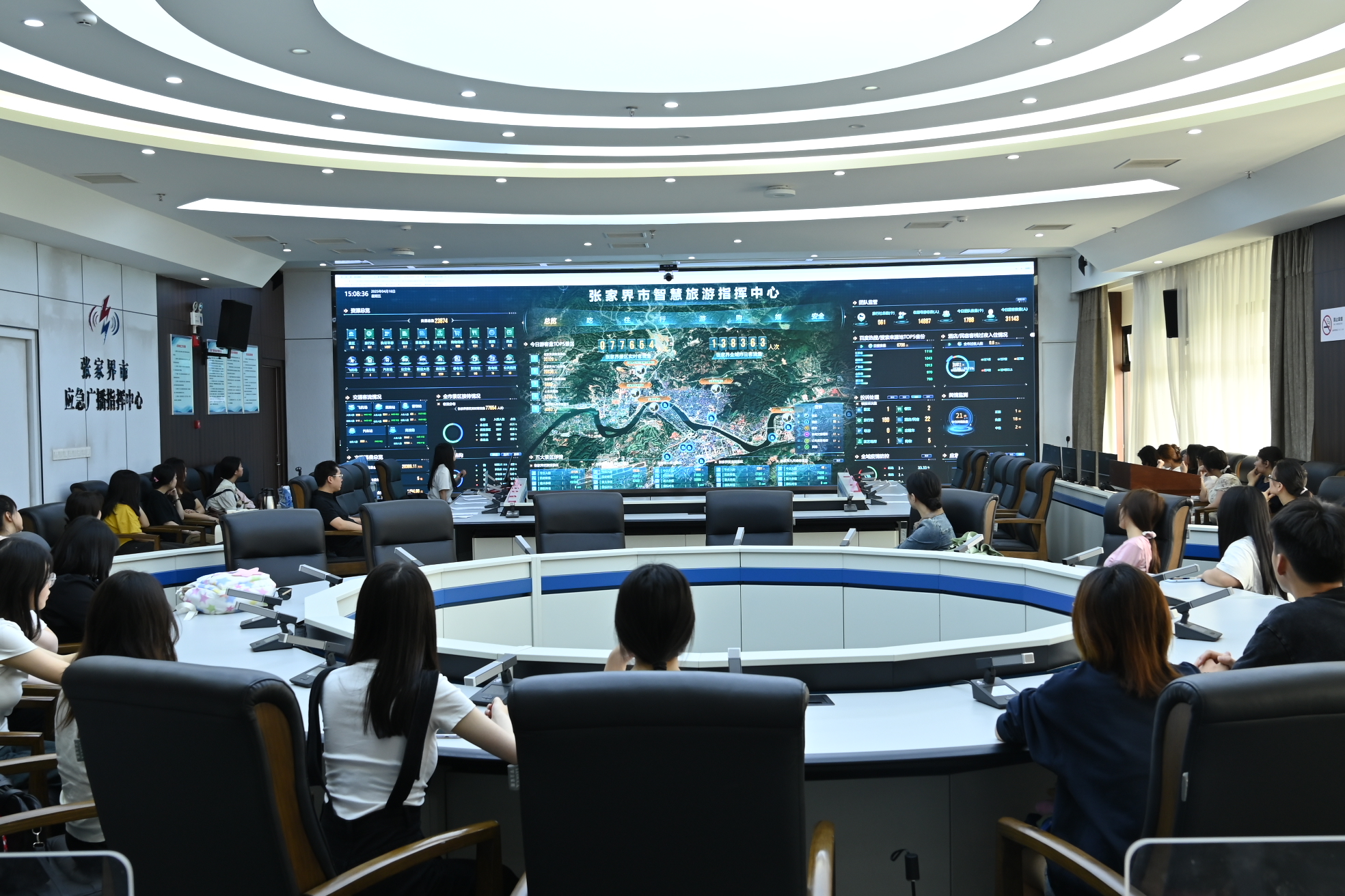 活动中,师生实地参观了文旅广体局智慧旅游指挥中心。产业科负责人详细介绍了张家界智慧旅游两大平台——“一机游”和“一平管”;市场营销科负责人则深入剖析了当地旅游市场潜力与挑战。通过现场观摩,师生全面了解了张家界市智慧旅游平台建设及数智文旅发展成果。