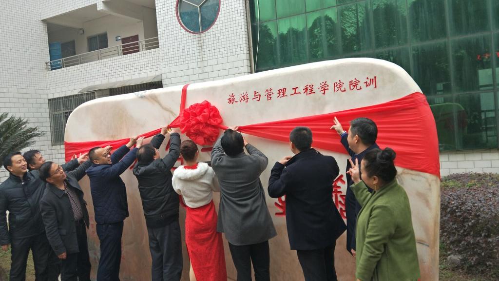 (通讯员:丁曦)真情馈母校,师生谱华章。2018年新年的第一天,学院在第二教学楼前坪举行了“知行合一,止于至善”院训石揭幕剪彩仪式。院训石由1997级中英文秘专业李跃勋、张国春、邹祥启、仇雄利、熊繁荣等5名校友捐赠。是日,学院尹华光院长、符铁军书记、吴永江副书记、1997级中英文秘20余名校友及学院在校学生齐襄盛会,见证院训石庄容面世,展示学院师生情谊的华美篇章。本次仪式由吴永江副书记主持。
