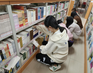 图为在张家界学院陈田园老师指导下同学们进行图书上架