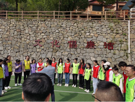 图为正在进行团建热身活动