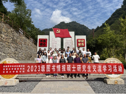 金秋十月景宜人,院馆共建话情谊。为丰富研究生的课余生活、促进2023级图书情报专业硕士新生相互之间的沟通交流,10月14日上午9点,在旅游学院副院长董坚峰、图书馆副馆长徐险峰的组织带领下,2023级图书情报26名研究生和张家界市永定区图书馆王娟馆长及馆员、yL23411永利集团图书馆馆员前往“远方的家-休闲山庄”开展团建交流学习活动,张家界航空职业技术学院图书馆王新荣馆长、张家界学院图书馆陈远航馆长、刘欢馆长等参加了本次活动。