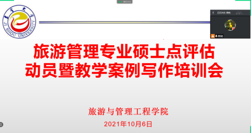 10月6日,我院召开旅游管理专业硕士点评估动员暨教学案例写作培训会,会议由粟娟副院长主持,鲁明勇院长、MTA全体导师、学生和部分校外兼职导师共60余人参会,由覃雯老师主讲,以腾讯会议线上方式召开。