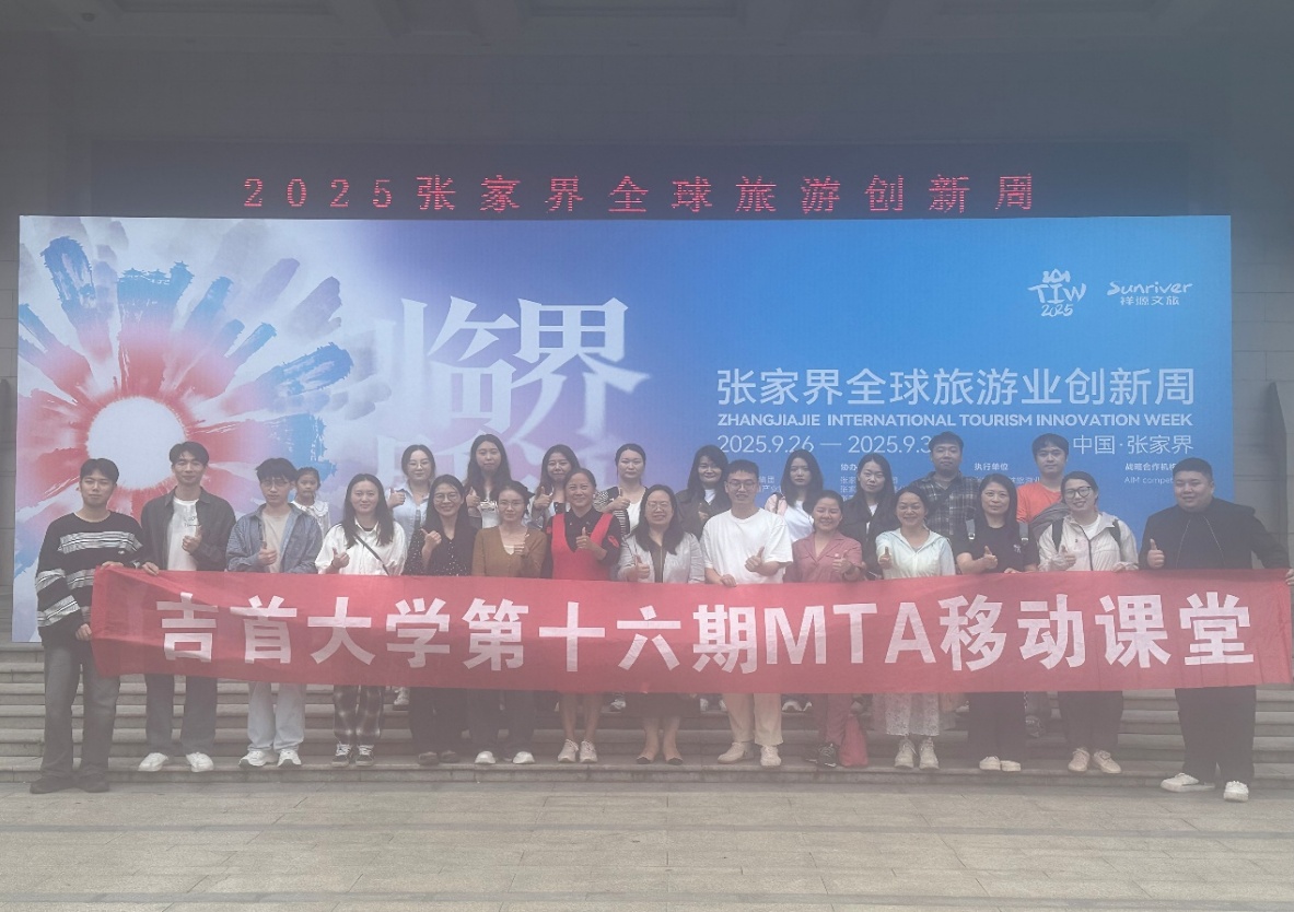 2025年9月26日,我院第十六期MTA移动课堂在张家界碧桂园凤凰酒店顺利开展。在粟娟副院长的带领下,2025级旅游管理专业(MTA)17名研究生及学院5名教师参加了全球旅游业创新周平行论坛——“国际旅游目的地的研学新机遇”。此次活动为同学们搭建了了解行业前沿、深化实践学习的重要平台。
