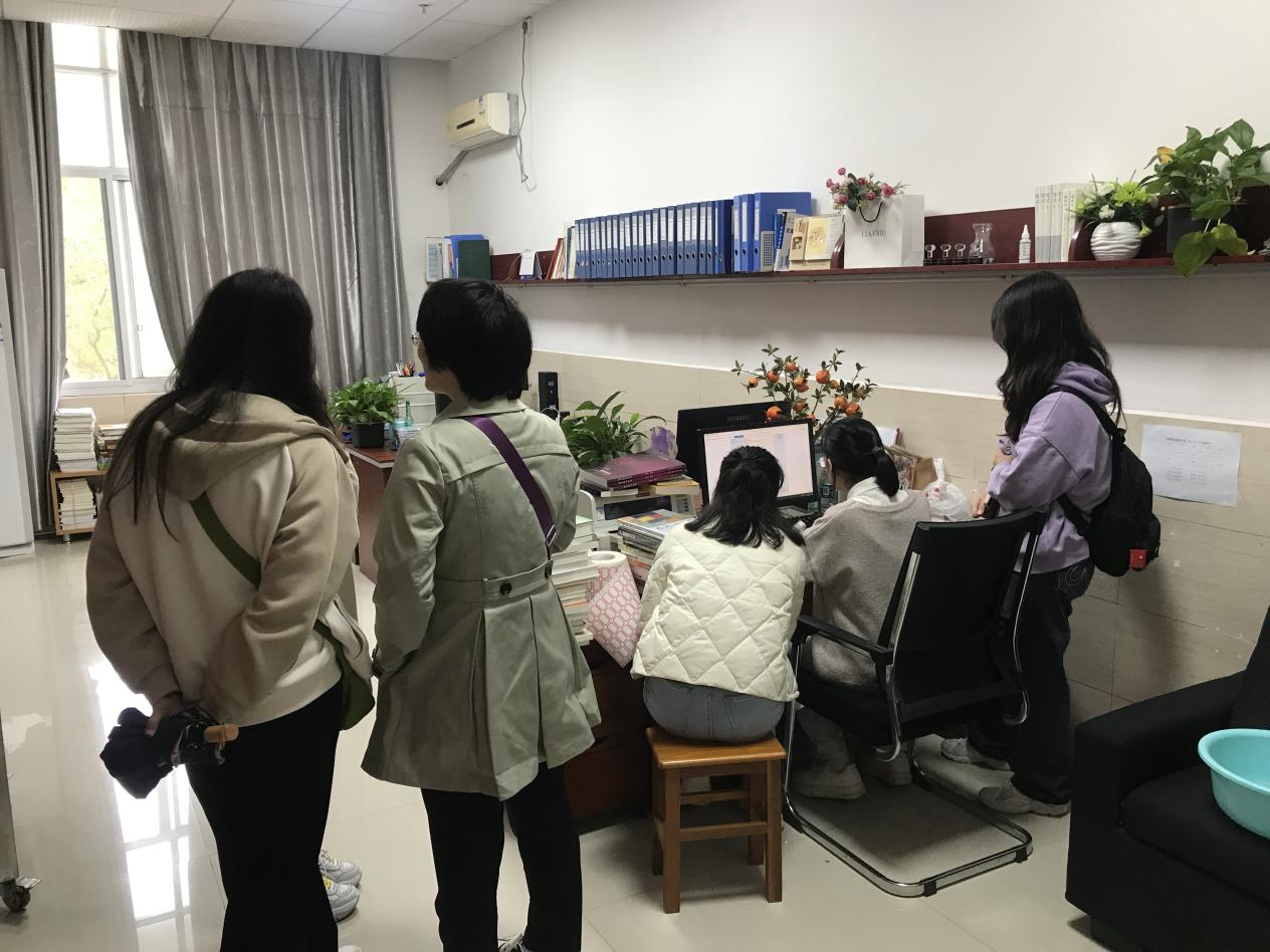 图为姚懿芳老师指导同学们进行图书MARC信息录入