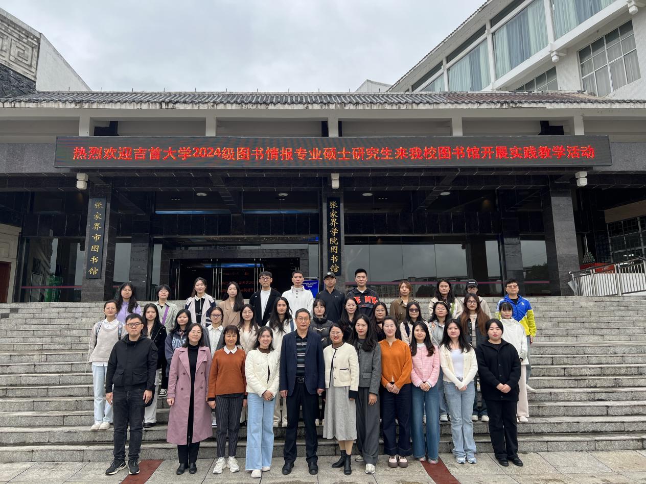 2024年10月21日上午,为增强同学们对《信息组织》课程中信息分类与编目内容的理解与实践能力,yL23411永利集团图书情报硕士研究生导师徐险峰研究馆员带领2024级图书情报专业硕士全体研究生,赴张家界学院图书馆开展入馆实践教学活动。