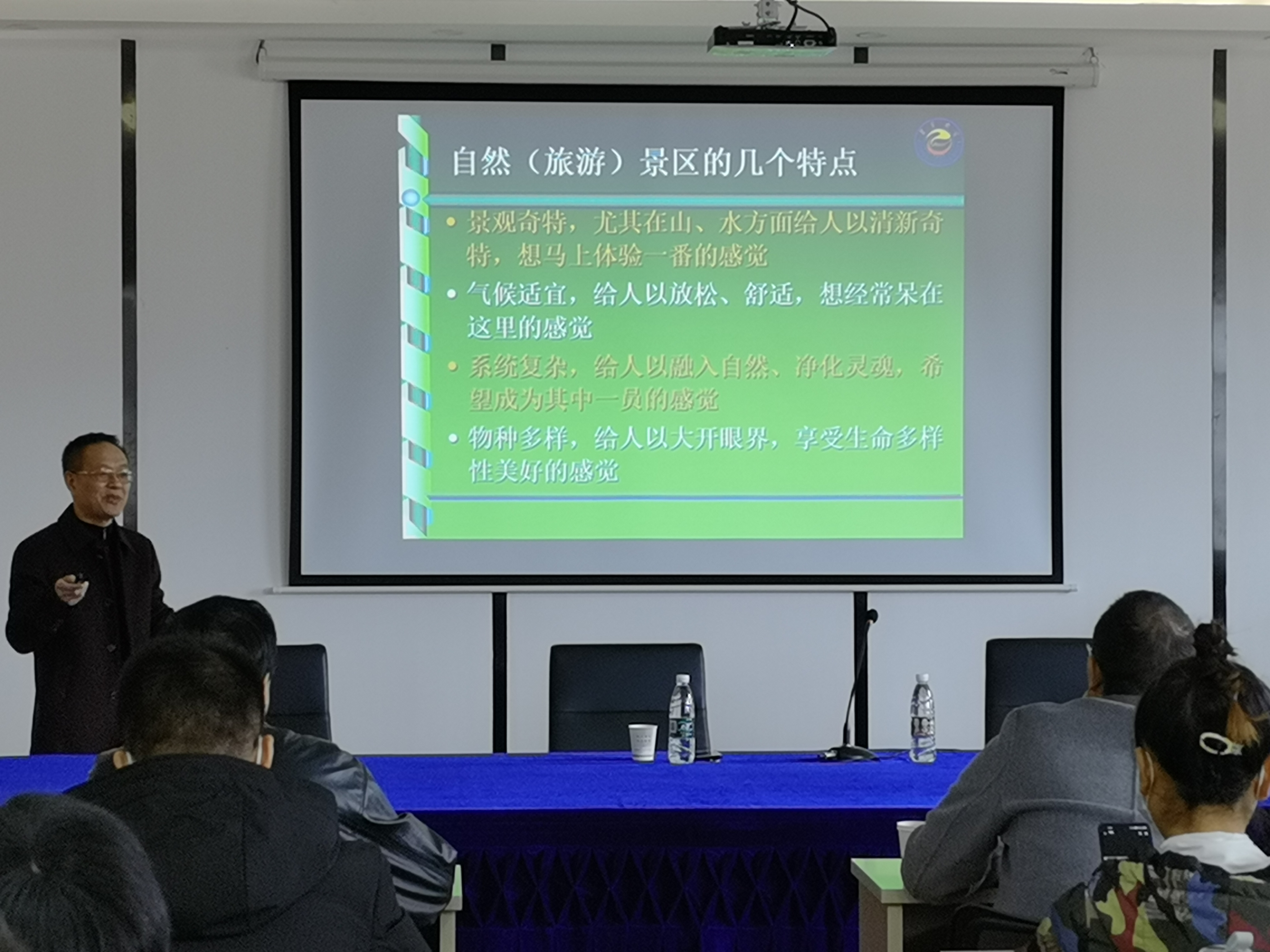 陈教授以“蛋糕理论”到“菠萝理论”对生态学与旅游学的关系进行了形象生动地分析,然后以大湘西自然景观河谷植物为研究对象,以植物生态学视角开展了湘西北河谷特殊生境植物、河谷生态效应、河谷植物区系特征与性质,并站在生态与旅游融合高度展望了未来植物生态研究的重点方向。本次讲座内容新颖,具有很好的启发性。生态与旅游的交叉与融合研究是旅游管理创新理论与实践的未来之路。粟院长评论本次讲座开阔了学生们的视野,启发了旅游管理研究生们的思维,为在旅游与生态融合研究方面以及社会科学研究与自然科学研究方法融合方面打开了一扇窗户,在科学研究方法论上也为同学们上了一次生动的示范课。