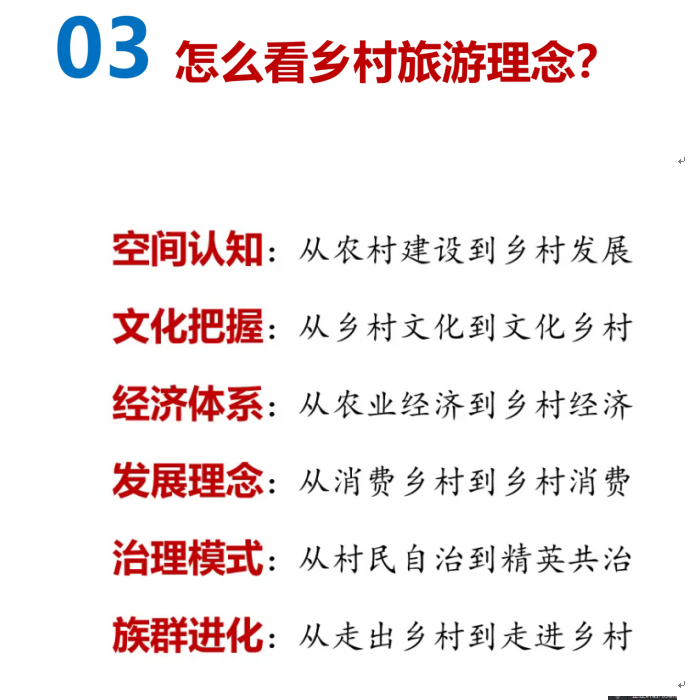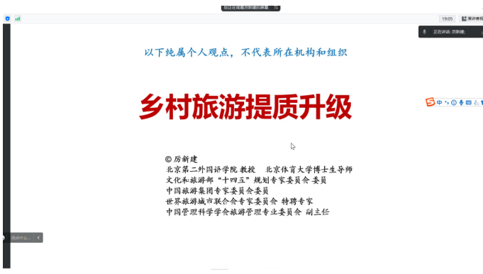 厉新建教授从怎么看乡村振兴、乡村旅游的核心问题、怎么看乡村旅游理念、怎么看乡村民宿发展四个方面讲述了乡村旅游提质升级之道。厉新建教授在讲座中指出,乡村振兴不仅是解决农村发展、农业转型、农民小康的三农问题,更重要的是聚焦乡村社会服务、社会治理等方面,构建现代农业产业体系、生产体系以及经营体系。在论及乡村旅游如何提质升级,厉新建教授认为立足解决乡村“人”“景”“核”“量”“场”等核心问题,从空间认知、文化把握、经济体系、发展观念、治理模式以及族群进化等维度全面更新乡村旅游发展理念,并以乡村民宿为案例,全面系统地介绍如何利用价值链、产业链、运营链实现乡村旅游提质升级。